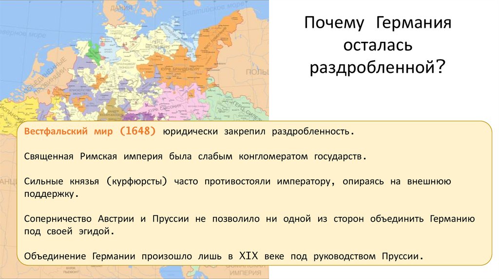 Вестфальский мир (1648) юридически закрепил раздробленность.