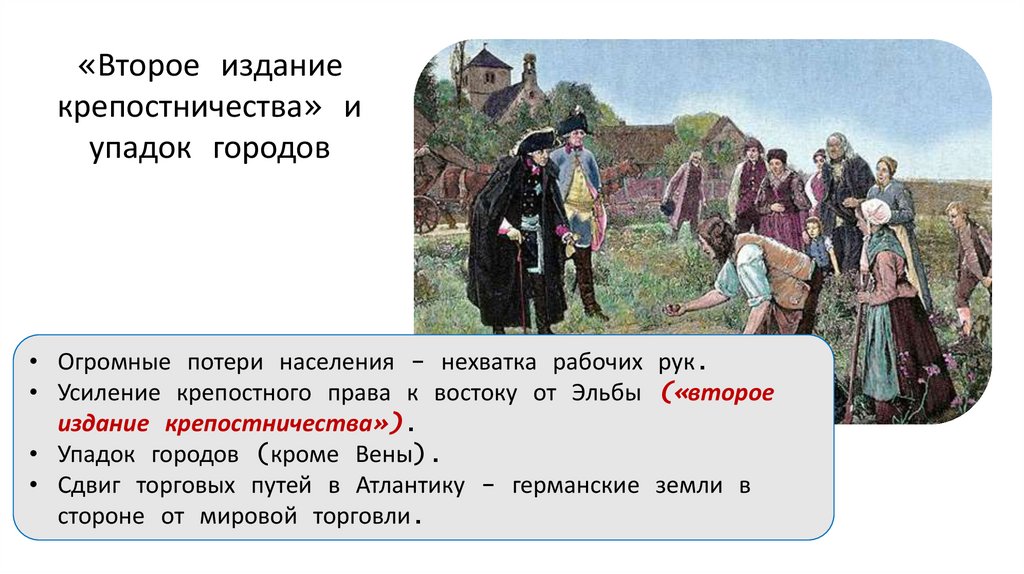 • Усиление крепостного права к востоку от Эльбы («второе