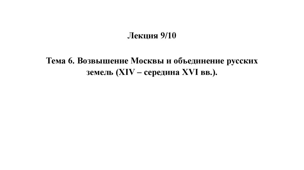 Тема 6. Возвышение Москвы и объединение русскихземель (XIV – середина XVI вв.).