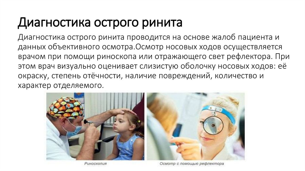Диагностика острого ринитаДиагностика острого ринита проводится на основе жалоб пациента и