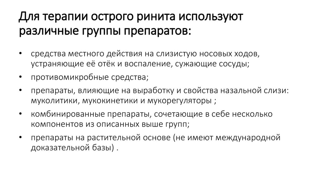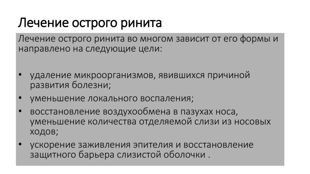 Лечение острого ринитаЛечение острого ринита во многом зависит от его формы и