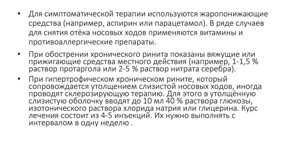 •Хронический ринит. Развивается примерно в 20 % случаев в результате