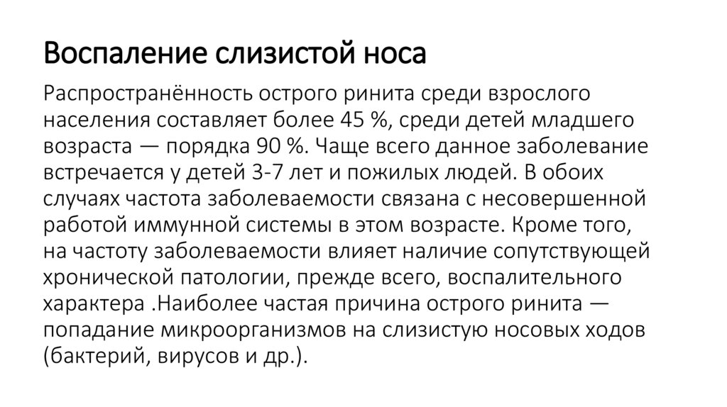 Воспаление слизистой носаРаспространённость острого ринита среди взрослого