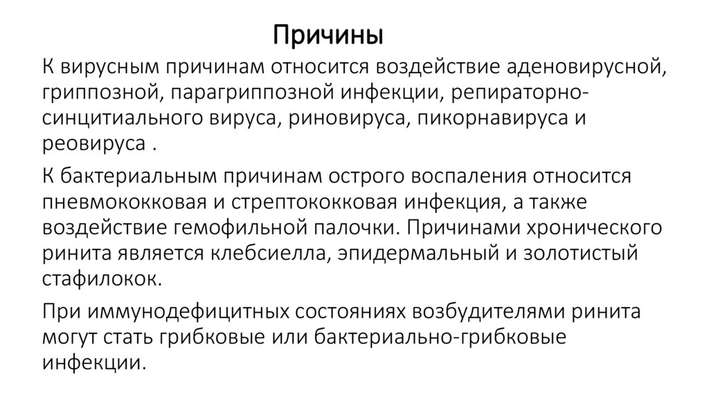 ПричиныК вирусным причинам относится воздействие аденовирусной,