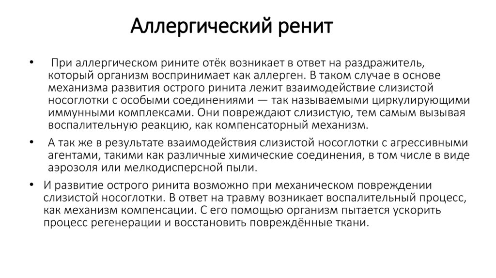 Аллергический ренитПри аллергическом рините отёк возникает в ответ на раздражитель,