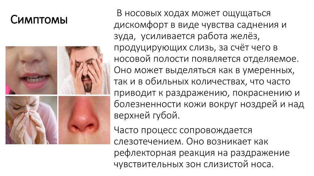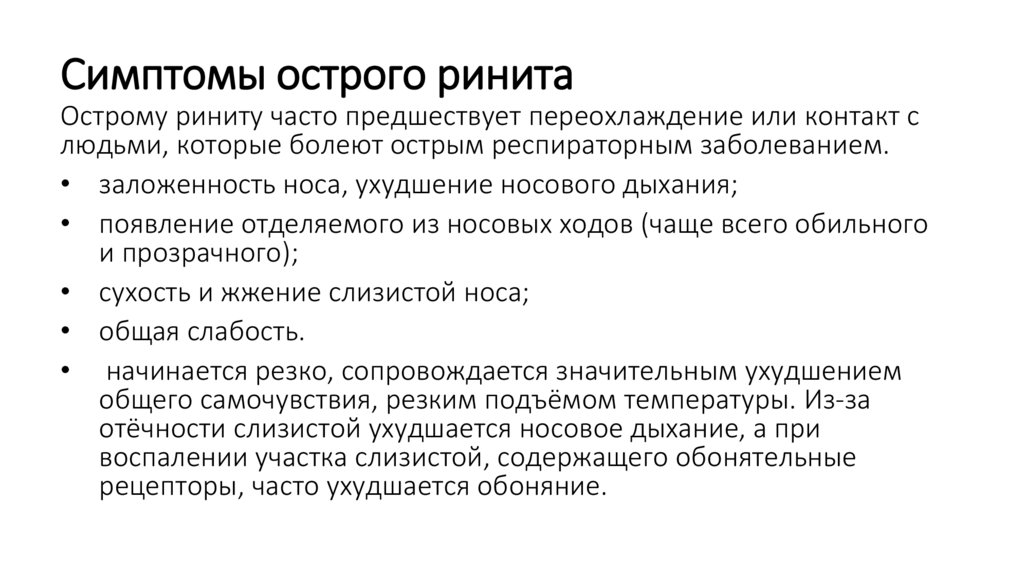 Симптомы острого ринитаОстрому риниту часто предшествует переохлаждение или контакт с
