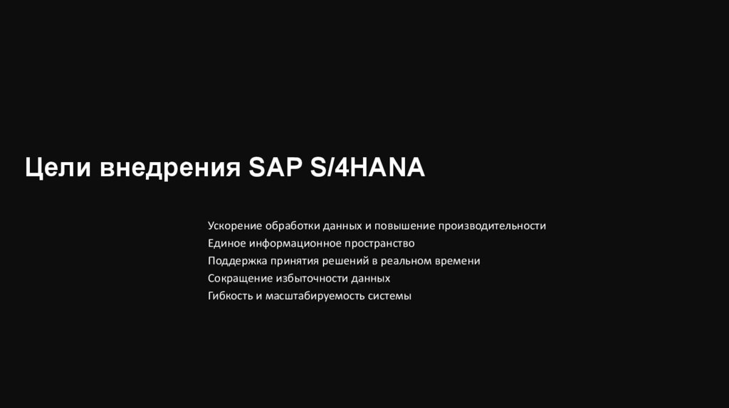Цели внедрения SAP S/4HANAУскорение обработки данных и повышение производительности