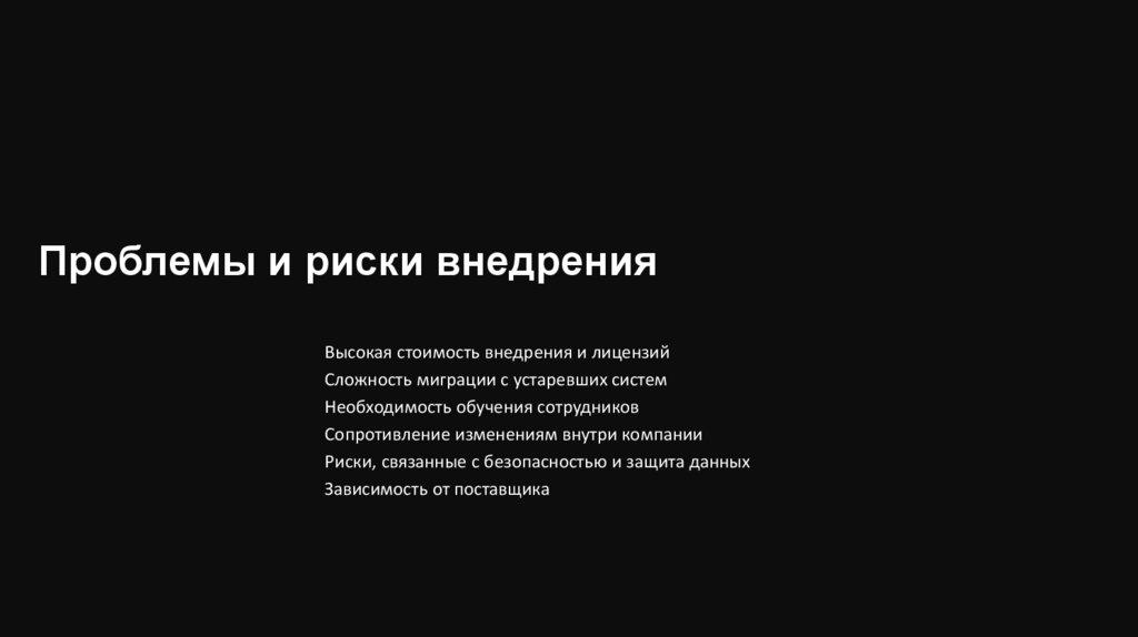 Проблемы и риски внедренияВысокая стоимость внедрения и лицензий
