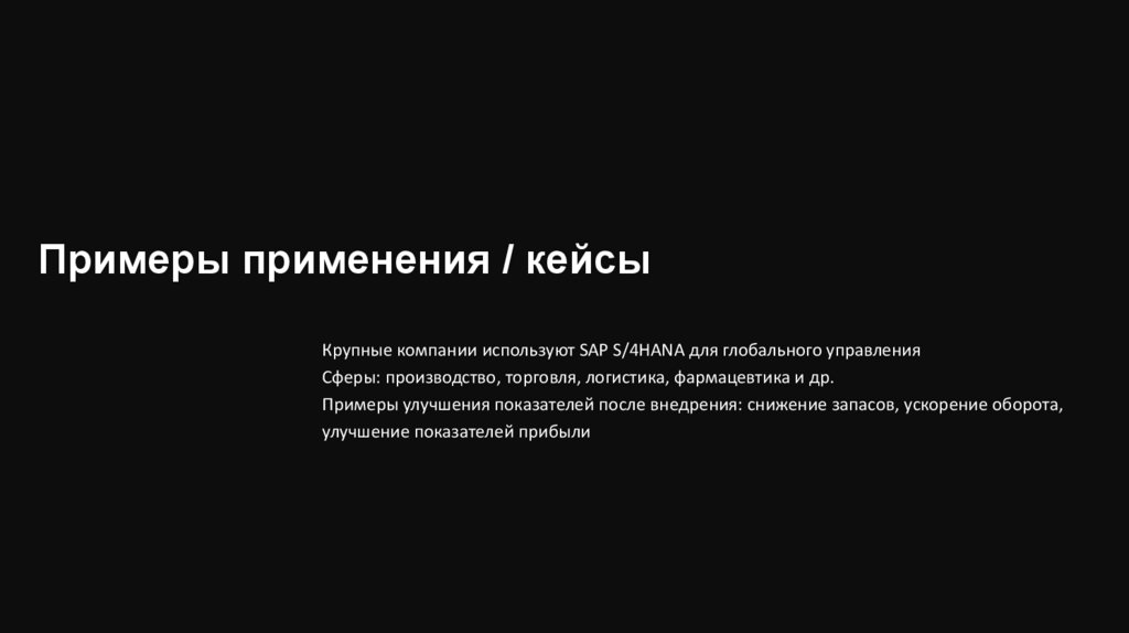 Примеры применения / кейсыКрупные компании используют SAP S/4HANA для глобального управления