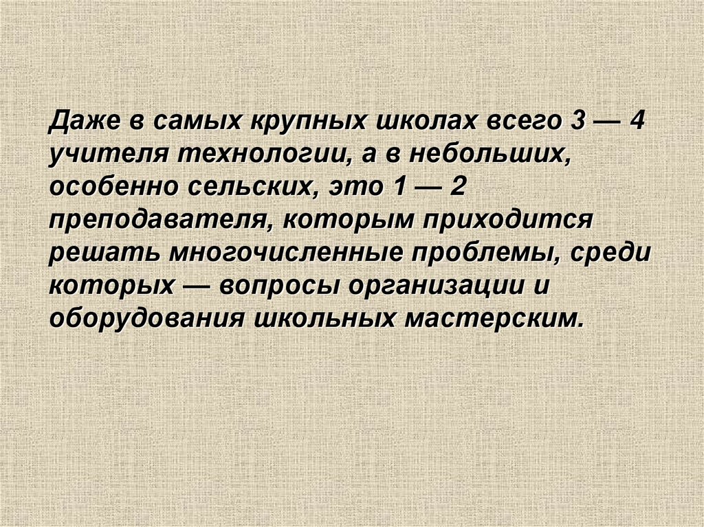 Даже в самых крупных школах всего 3 — 4учителя технологии, а в небольших,