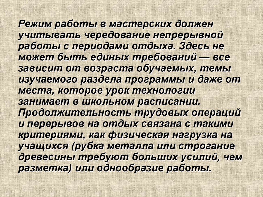 Режим работы в мастерских долженучитывать чередование непрерывной