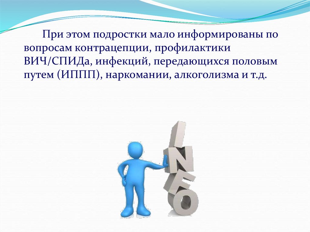 При этом подростки мало информированы повопросам контрацепции, профилактики