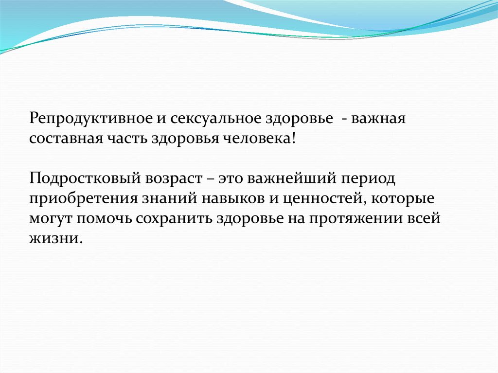 Репродуктивное и сексуальное здоровье - важнаясоставная часть здоровья человека!