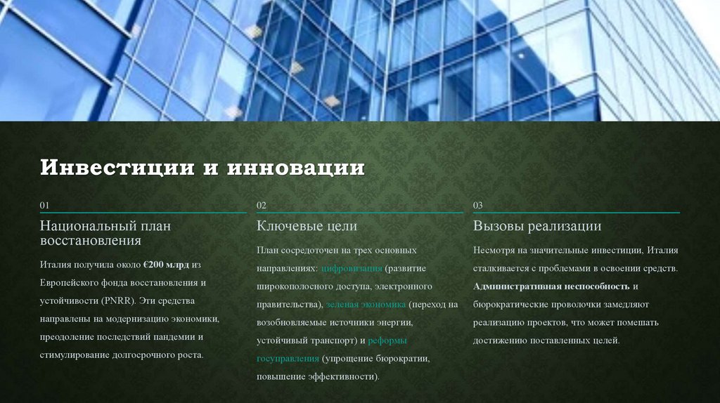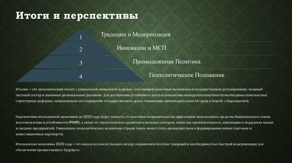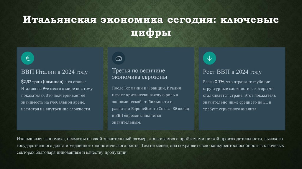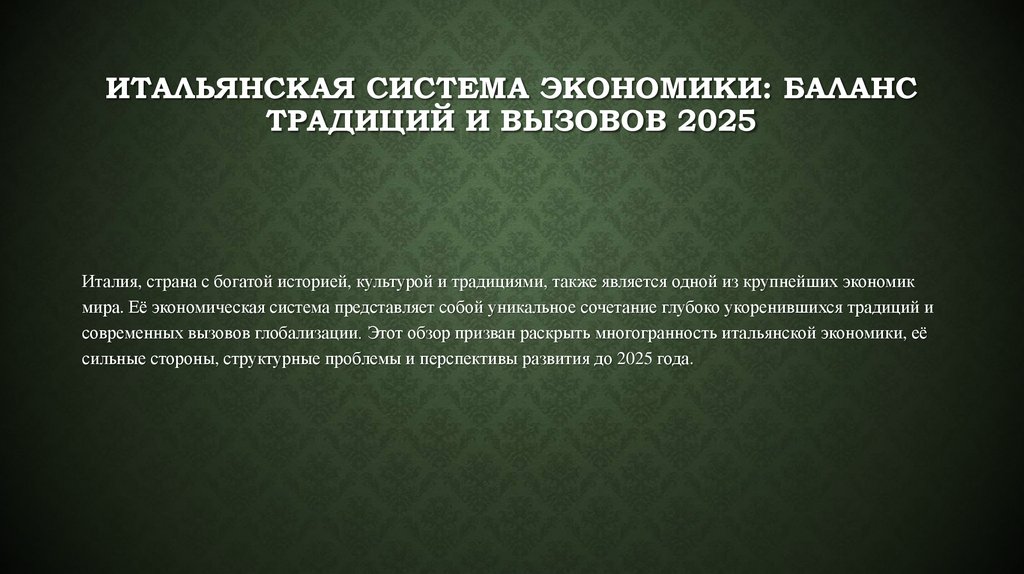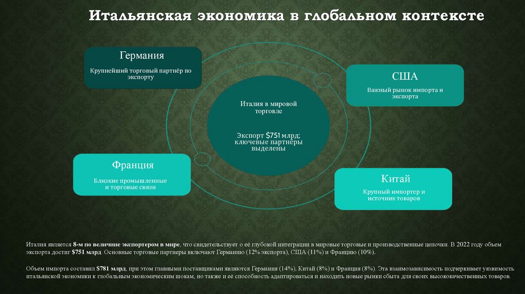 современных вызовов глобализации. Этот обзор призван раскрыть многогранность итальянской экономики, её