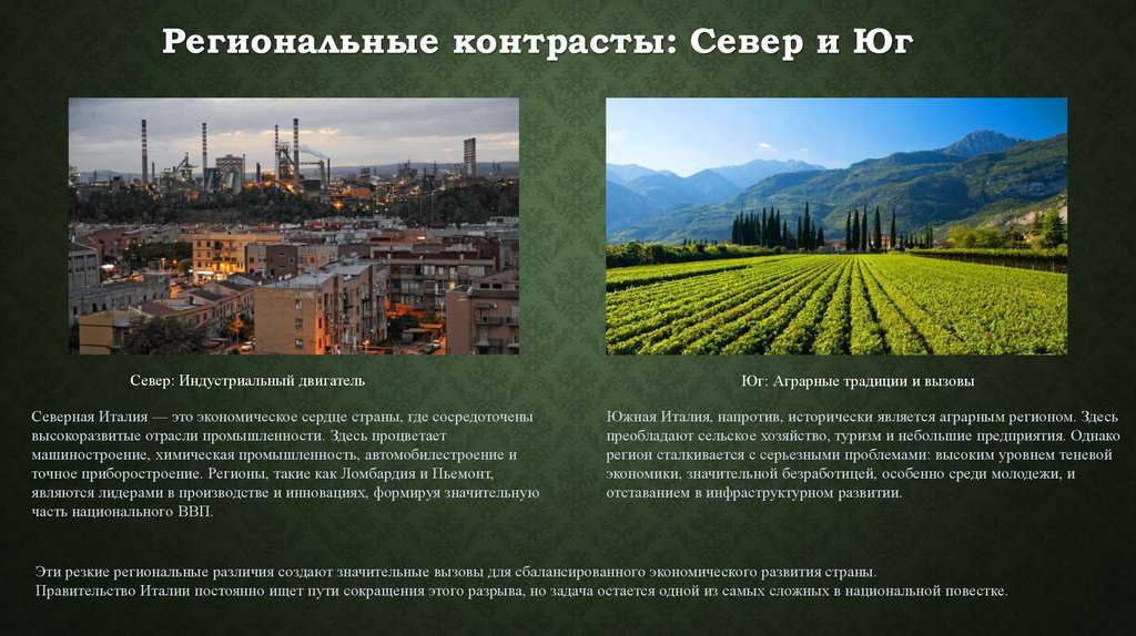 Южная Италия, напротив, исторически является аграрным регионом. Здесь