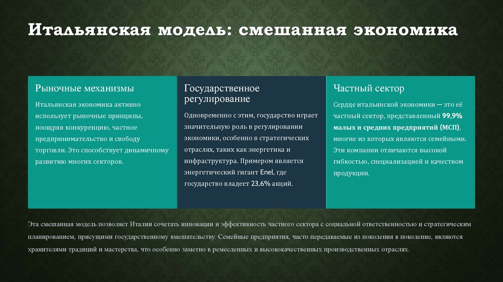 Итальянская модель: смешанная экономикаРыночные механизмы