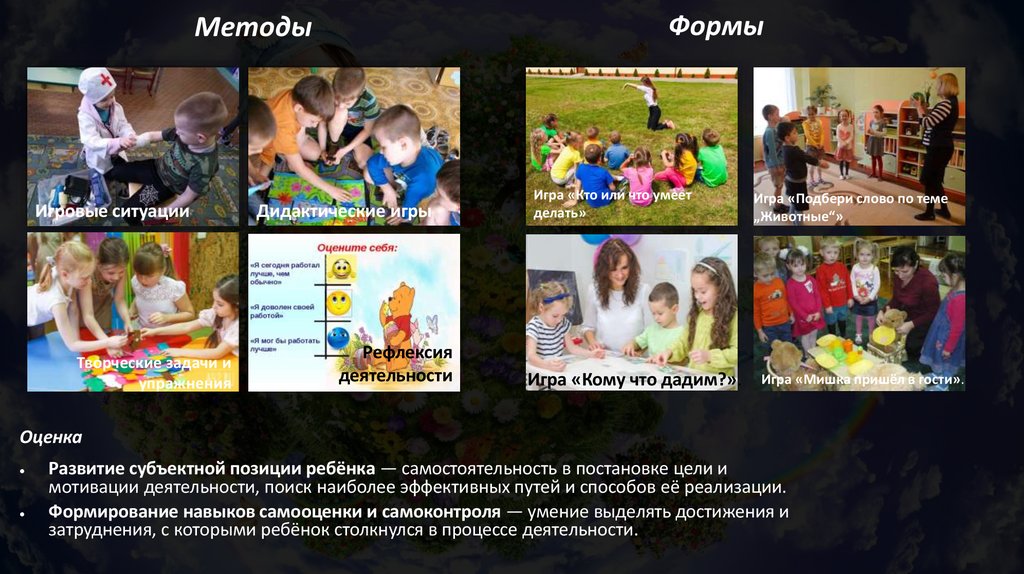 Цель — формирование субъектной позиции ребёнка в разных