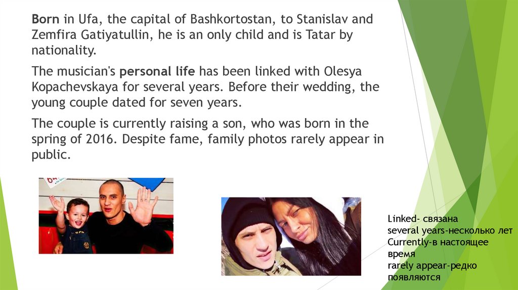 Born in Ufa, the capital of Bashkortostan, to Stanislav andZemfira Gatiyatullin, he is an only child and is Tatar by