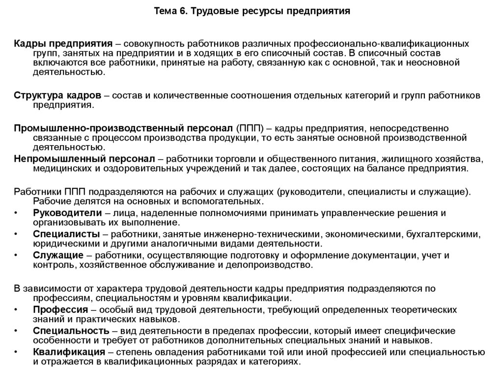 2. Тема 6. Трудовые ресурсы предприятия