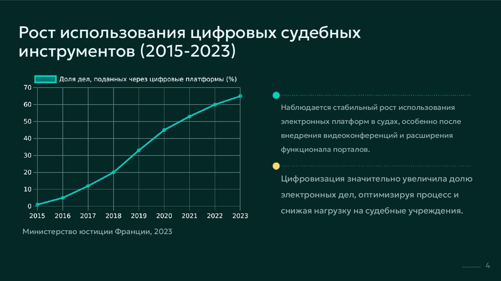 Рост использования цифровых судебныхинструментов (2015-2023)
