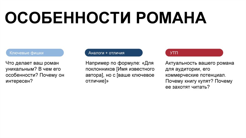 ОСОБЕННОСТИ РОМАНАКлючевые фишки