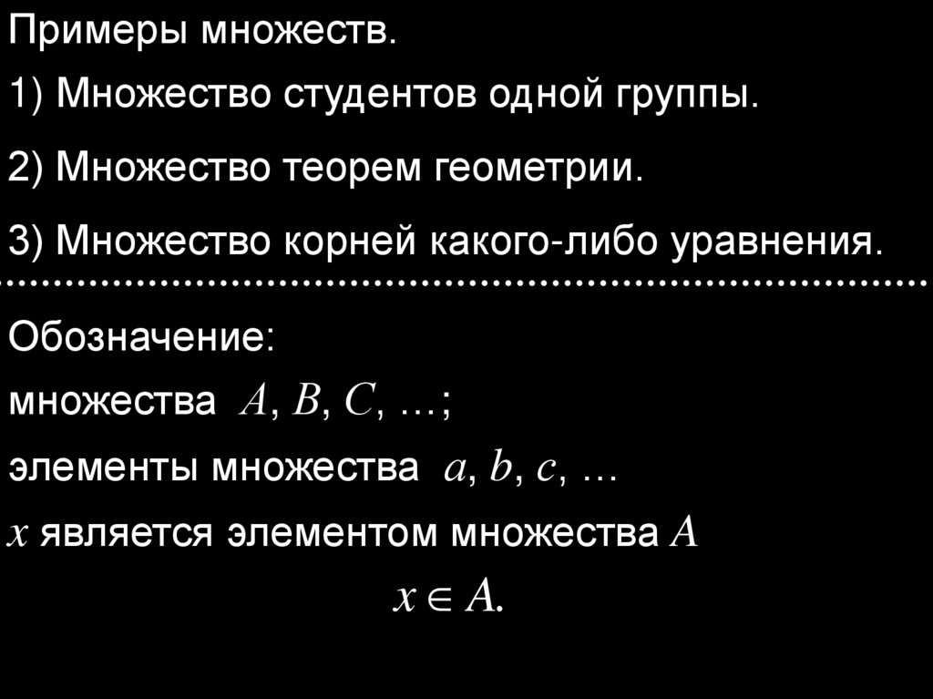 Примеры множеств.1) Множество студентов одной группы.