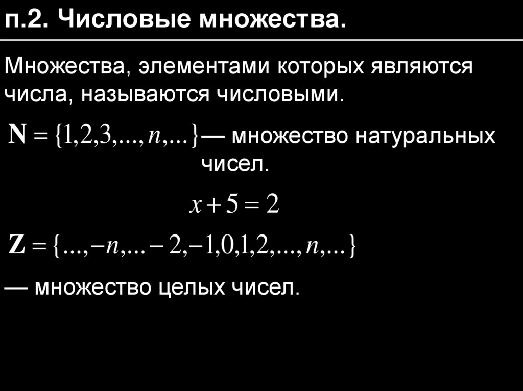 п.2. Числовые множества.Множества, элементами которых являются