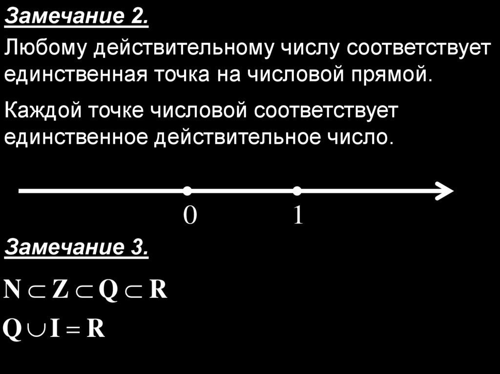 Замечание 2.Любому действительному числу соответствует