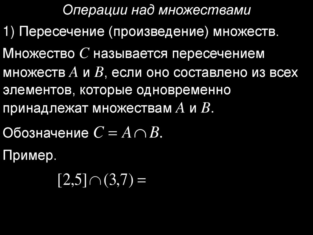 Операции над множествами1) Пересечение (произведение) множеств.