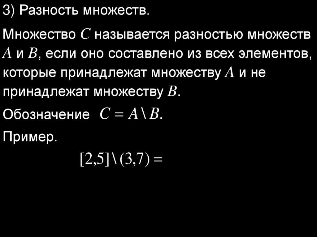 3) Разность множеств.Множество C называется разностью множеств
