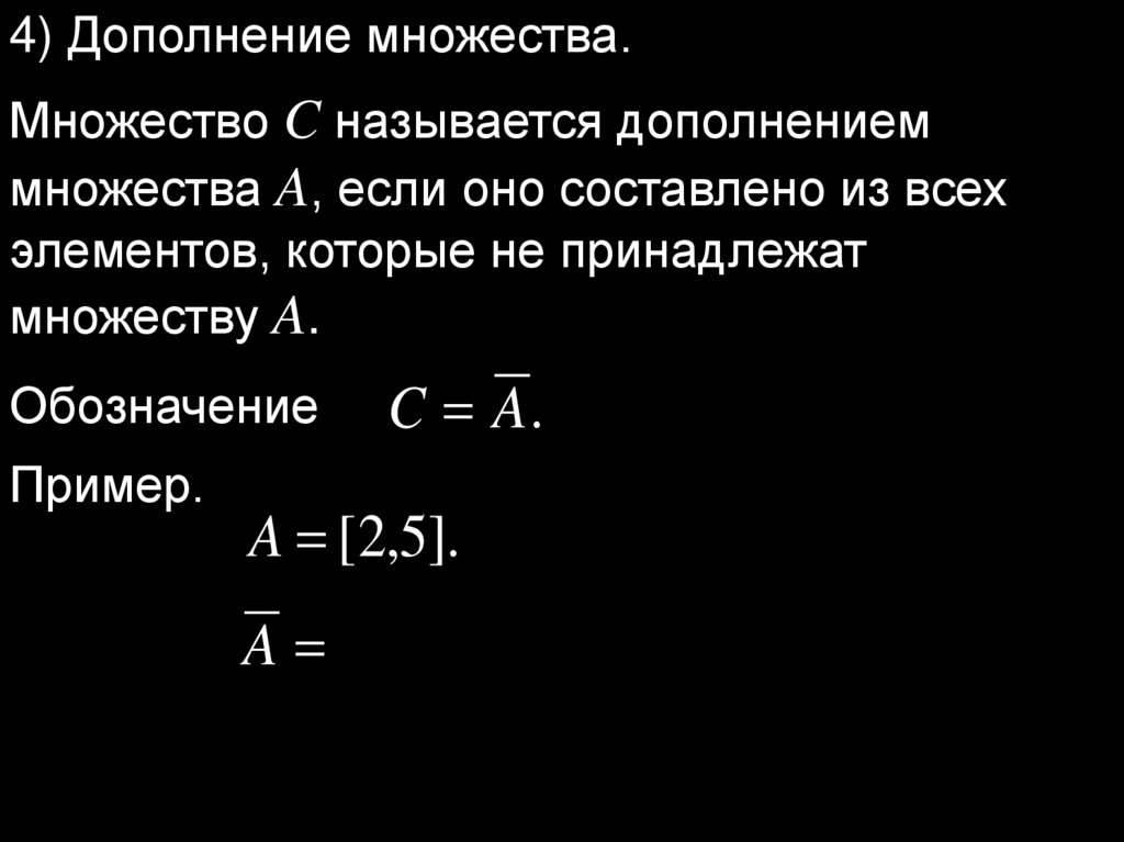 4) Дополнение множества.Множество C называется дополнением