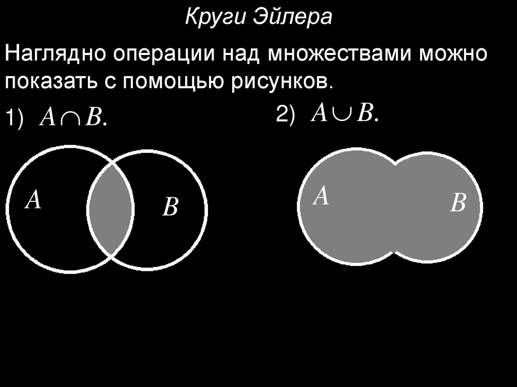 Круги ЭйлераНаглядно операции над множествами можно