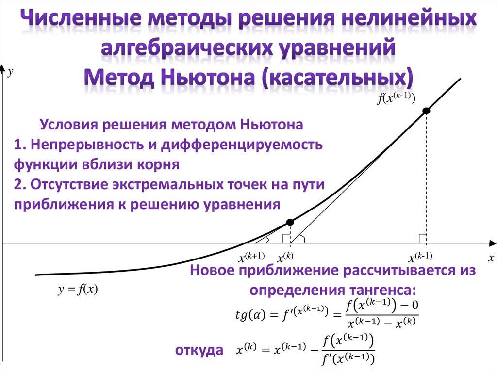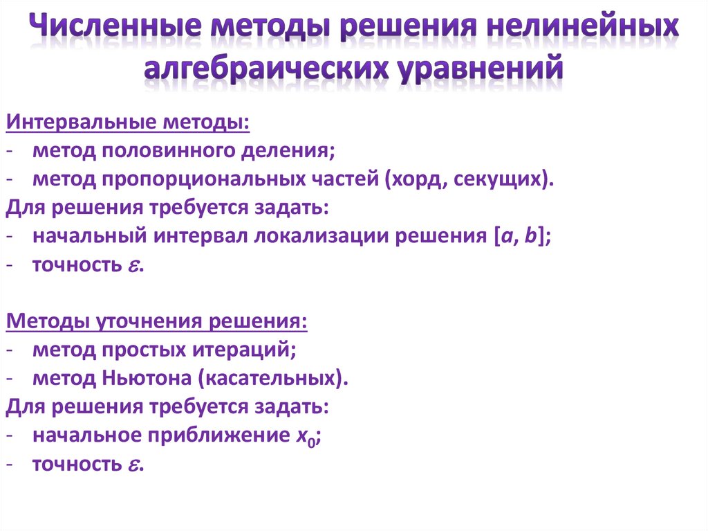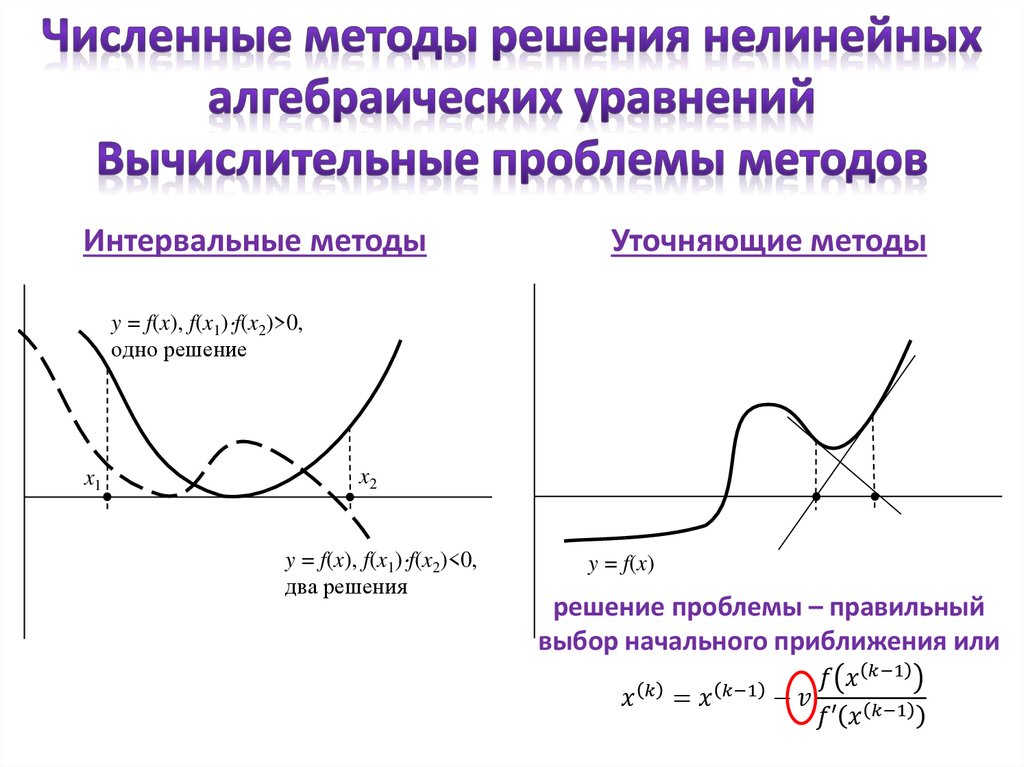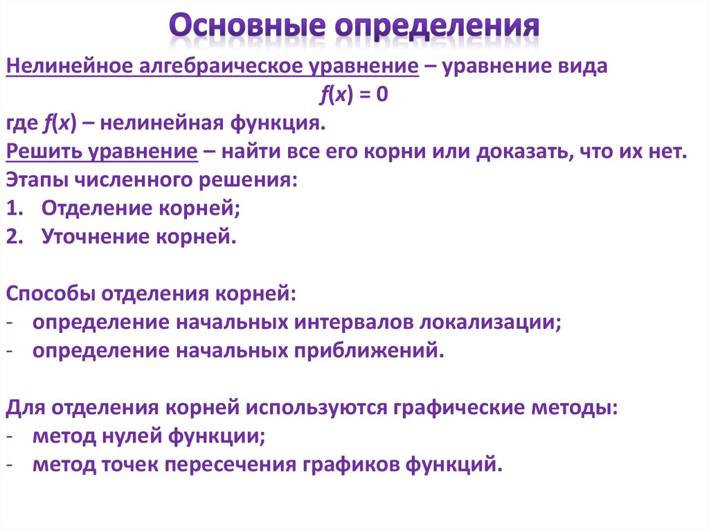 Нелинейное алгебраическое уравнение – уравнение видаf(x) = 0