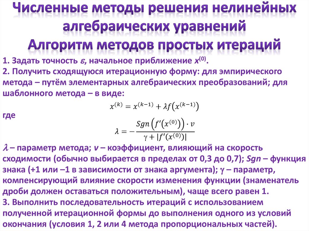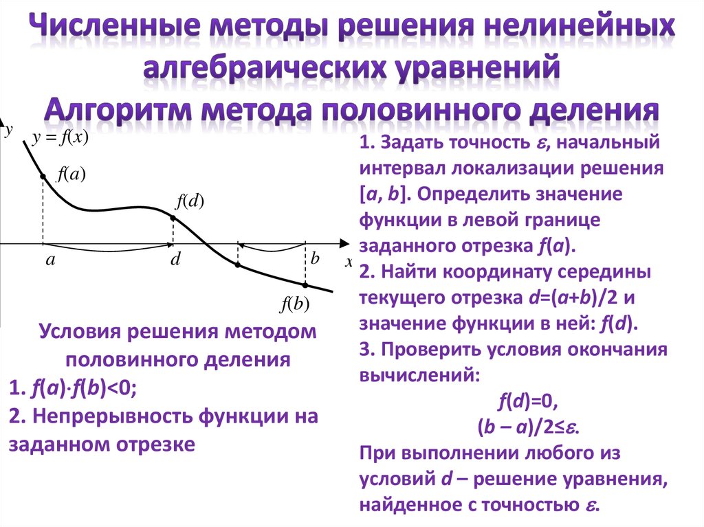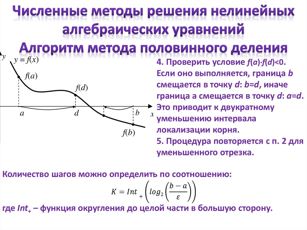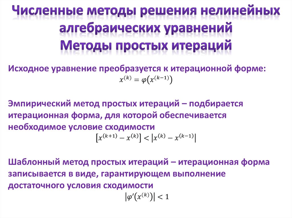 Нелинейное алгебраическое уравнение – уравнение видаf(x) = 0