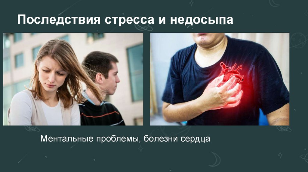 Последствия стресса и недосыпаМентальные проблемы, болезни сердца