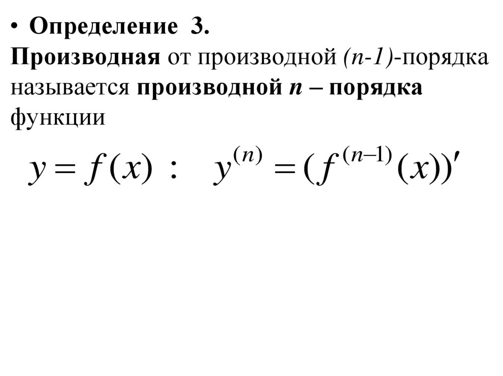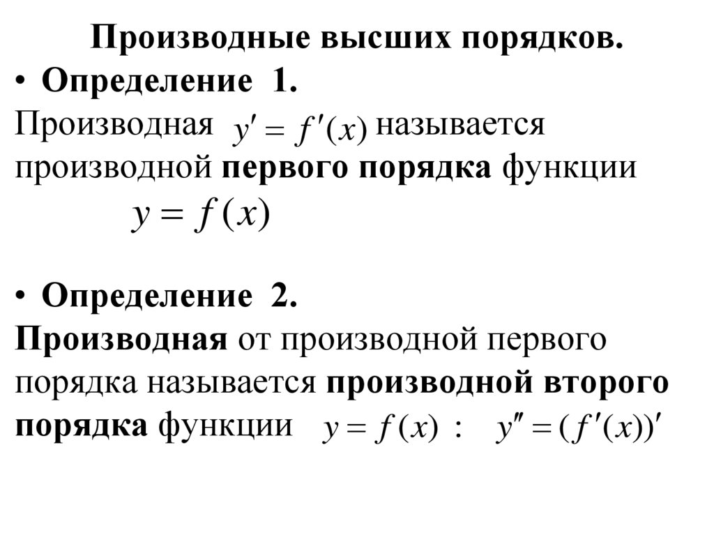 • Производные второго, третьего и т.д. порядковфункции y f x