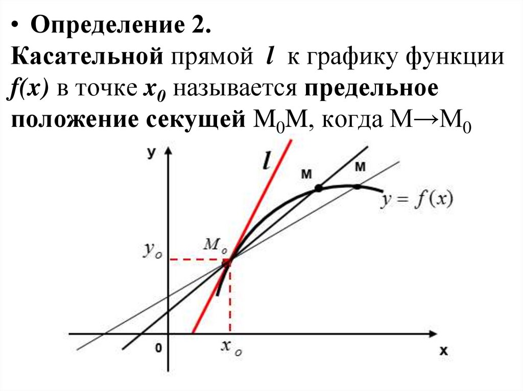 • Определение 2.Касательной прямой l к графику функции