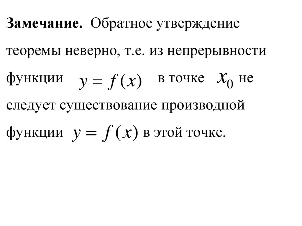 Связь между существованиемпроизводной и непрерывностью