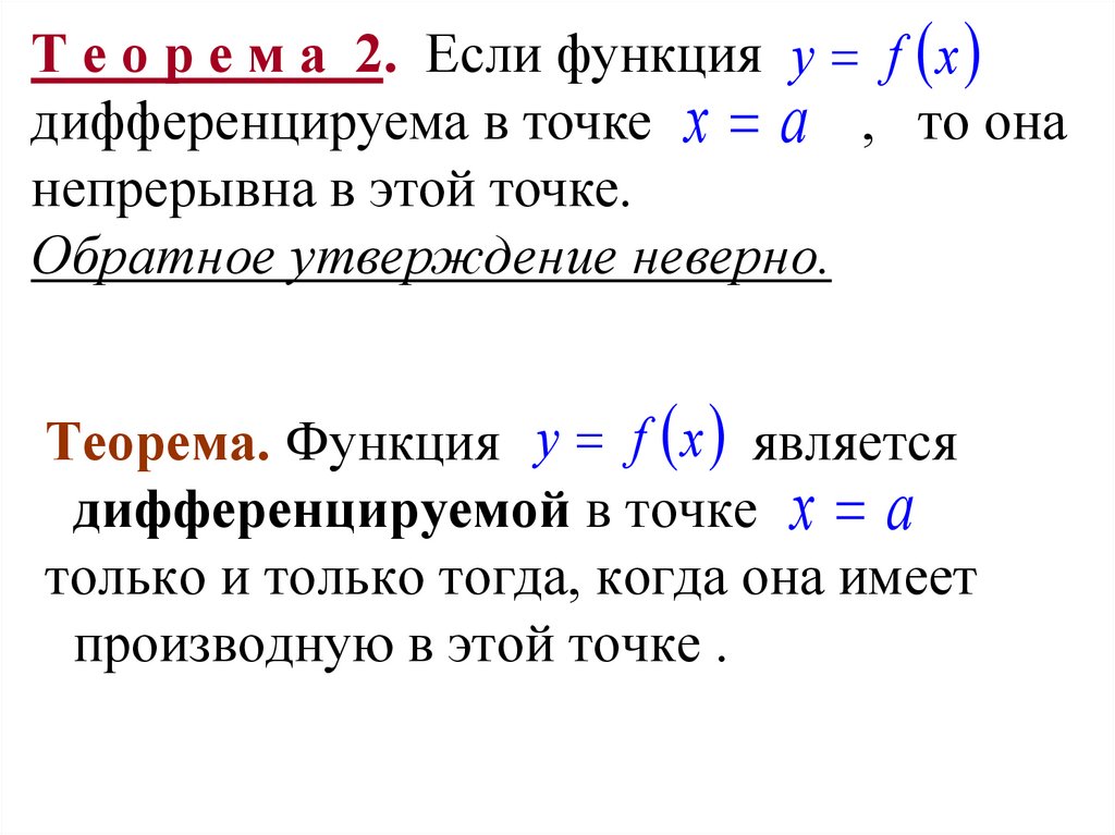 Т е о р е м а 2. Если функция y f xдифференцируема в точке х а , то она