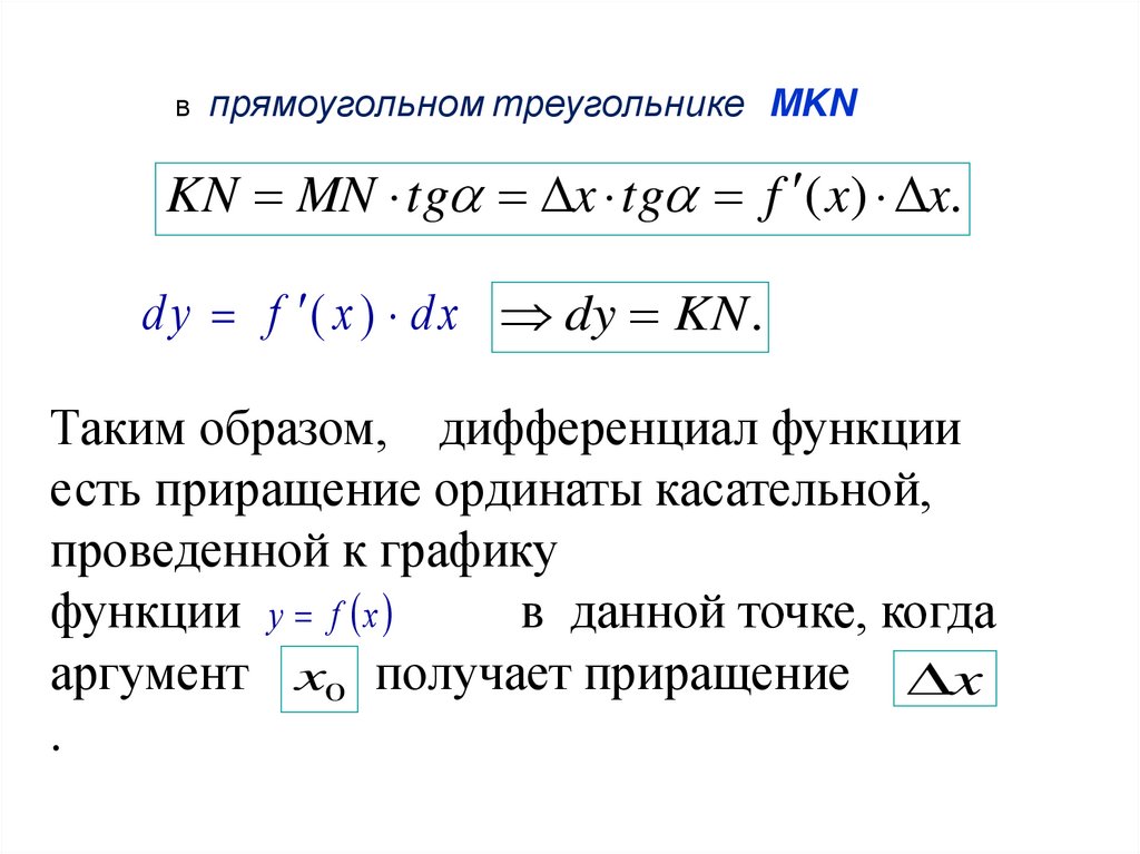 • Дифференциал dyфункции y f x в точке