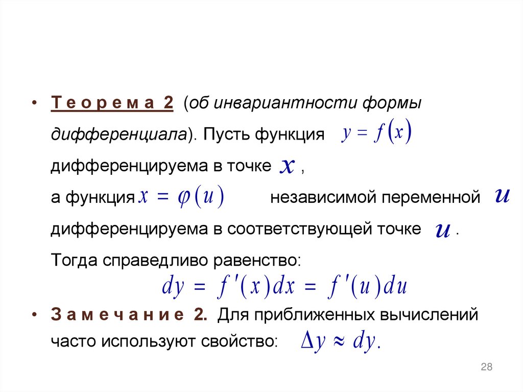 • Т е о р е м а 2 (об инвариантности формыдифференциала). Пусть функция