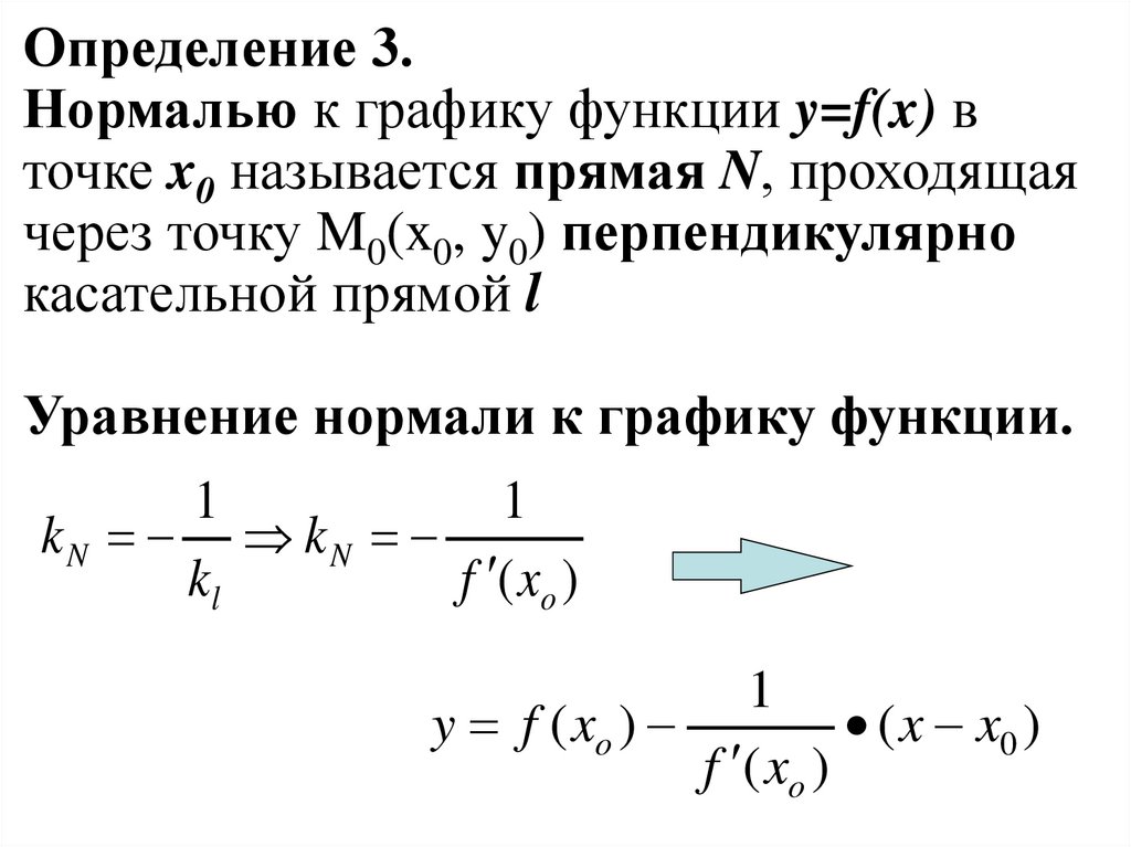 Уравнение нормали к графику функции.