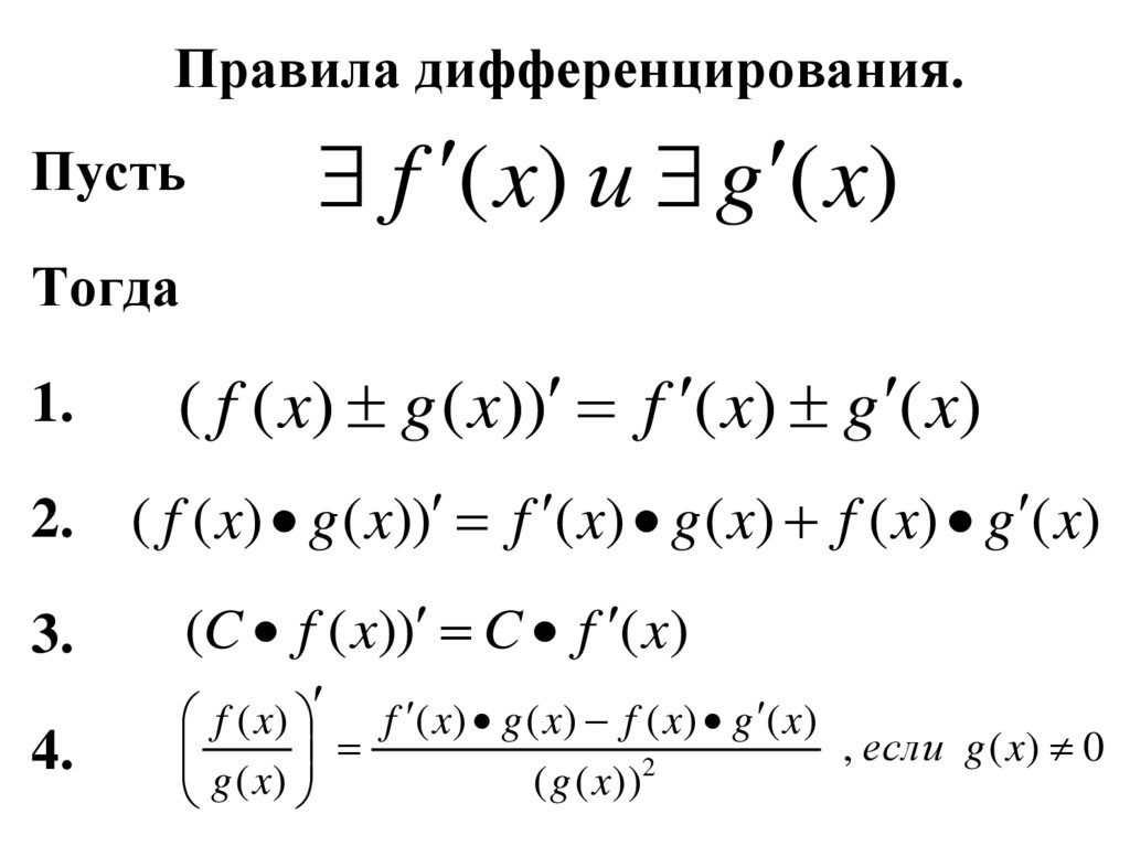 Правила дифференцирования.Пусть