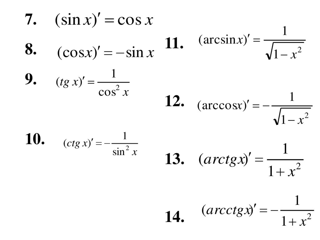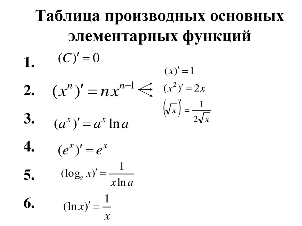 Таблица производных основныхэлементарных функций