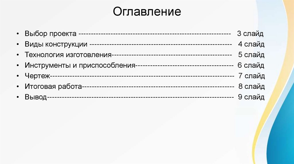 ОглавлениеВыбор проекта -------------------------------------------------------------- 3 слайд