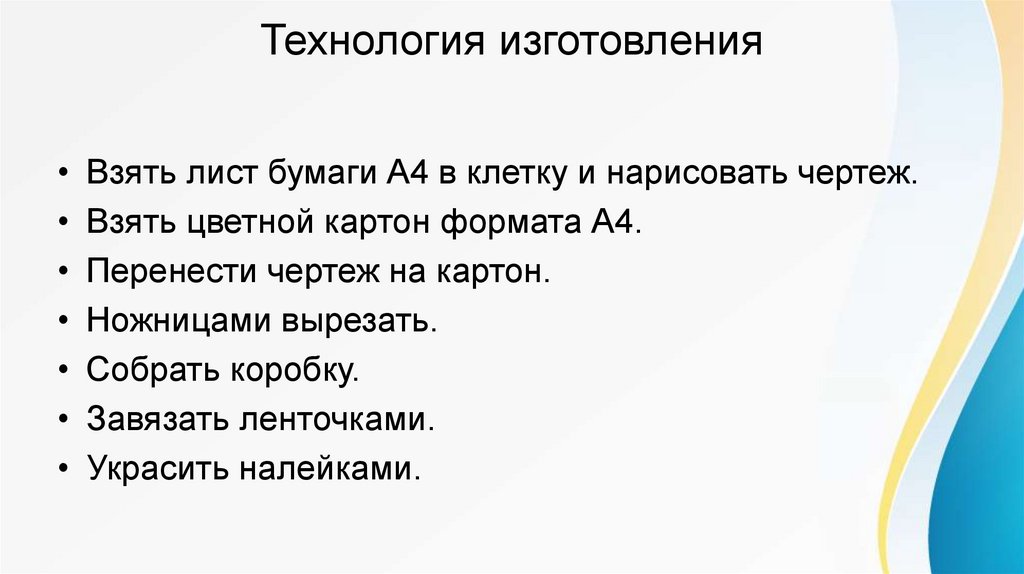 Технология изготовления• Взять лист бумаги А4 в клетку и нарисовать чертеж.