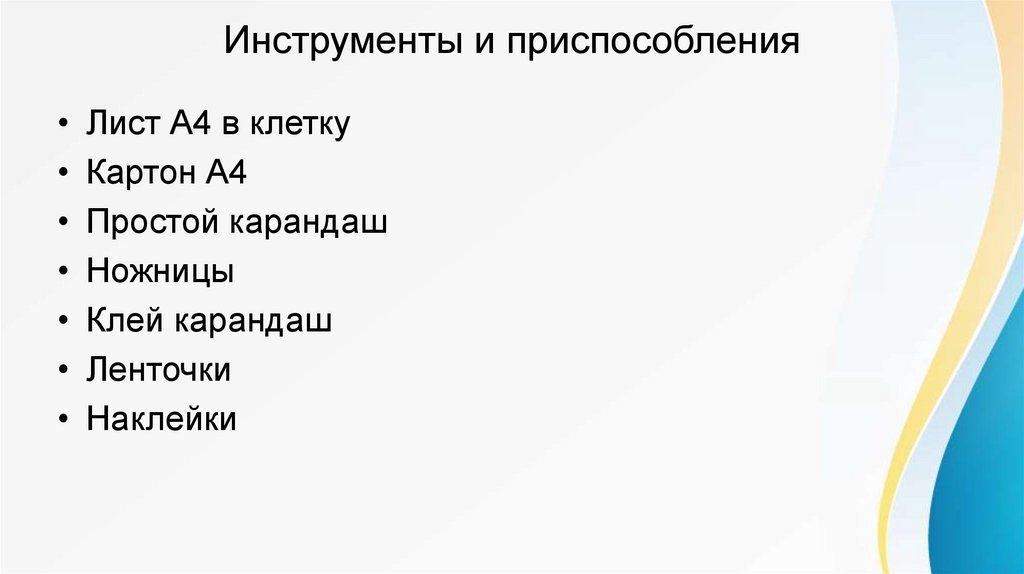 Инструменты и приспособления---------------------------------------- 6 слайд