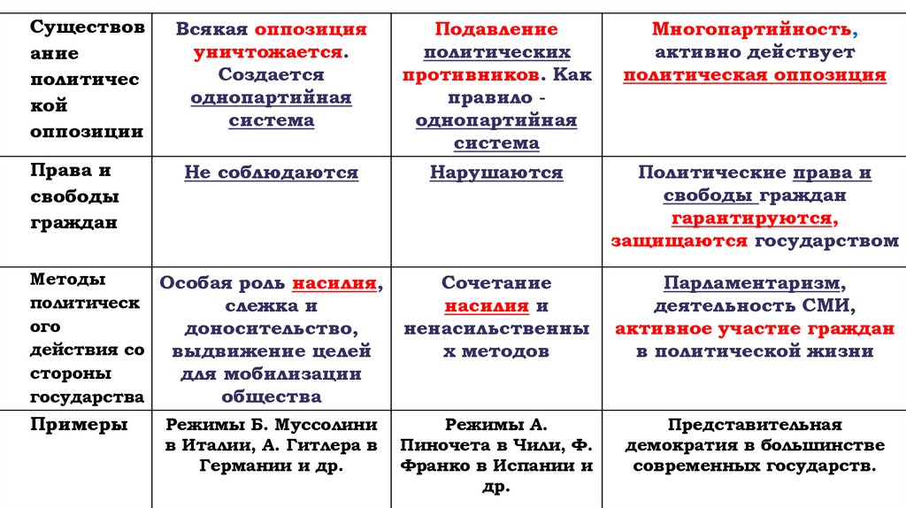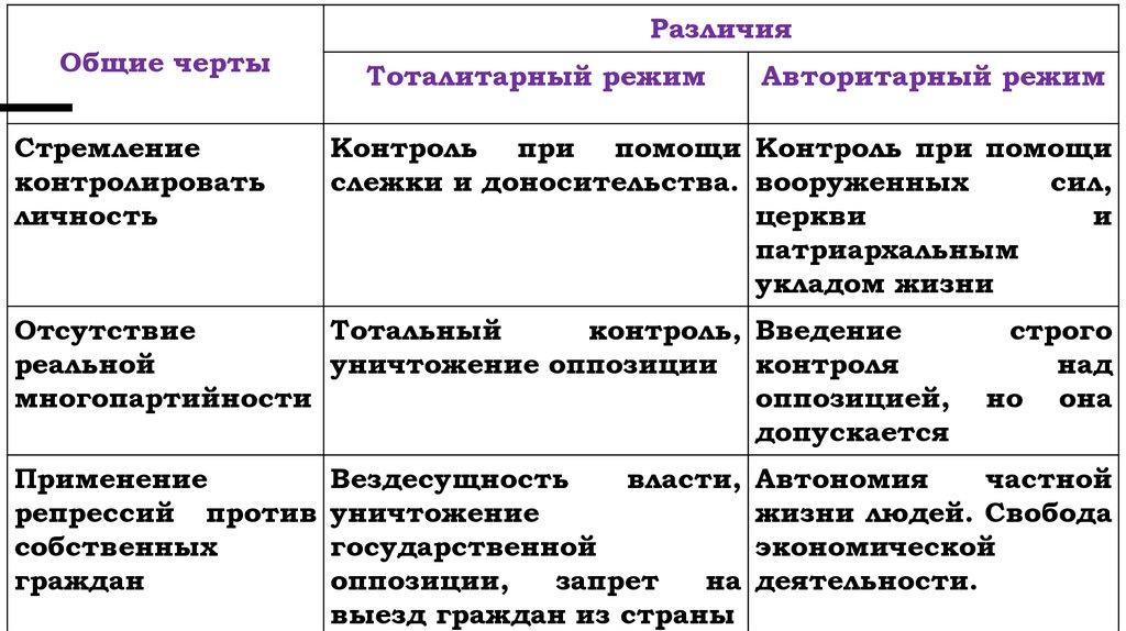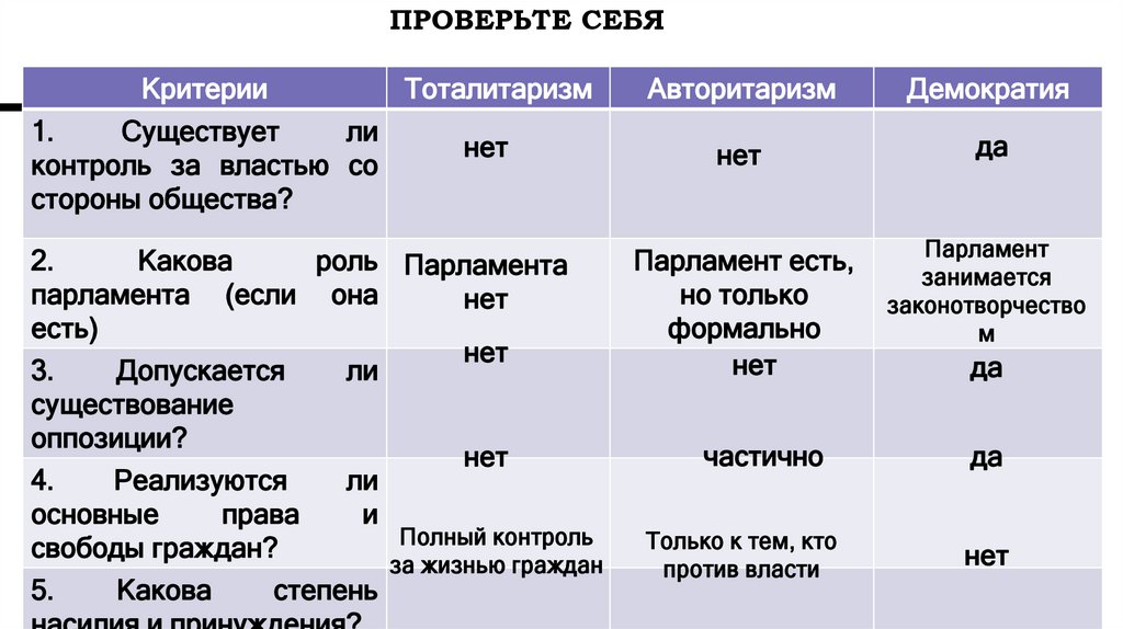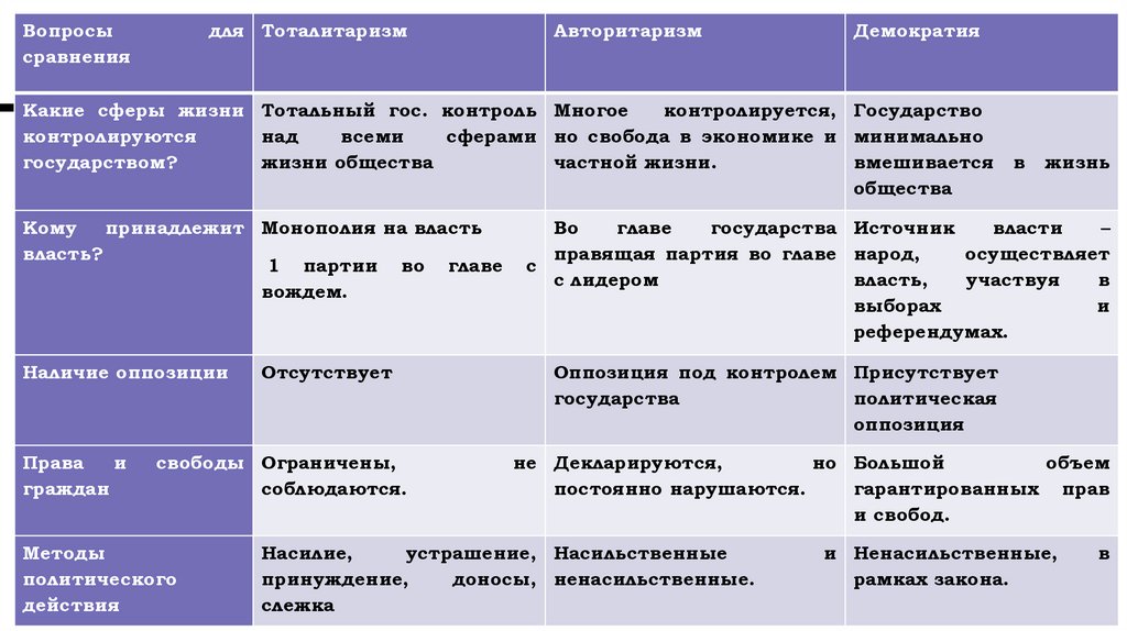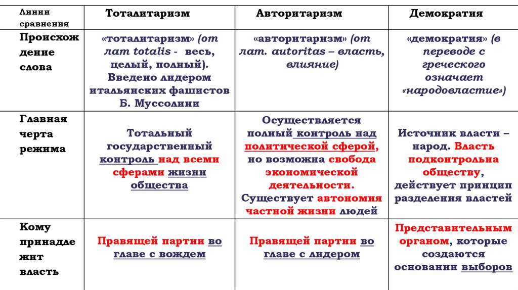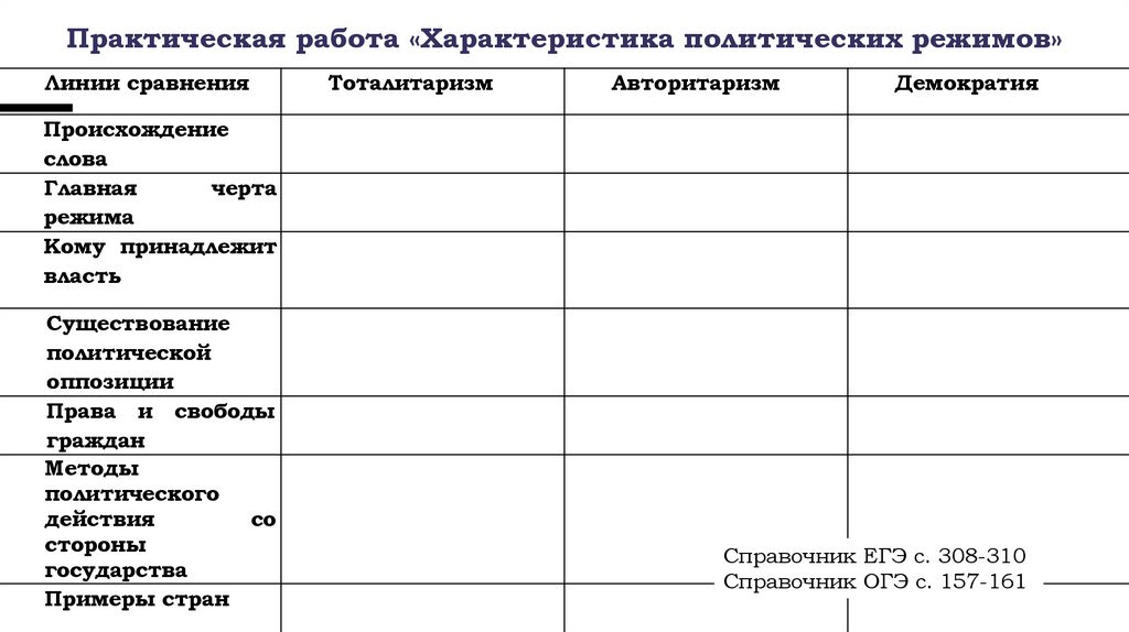 Практическая работа «Характеристика политических режимов»Линии сравнения