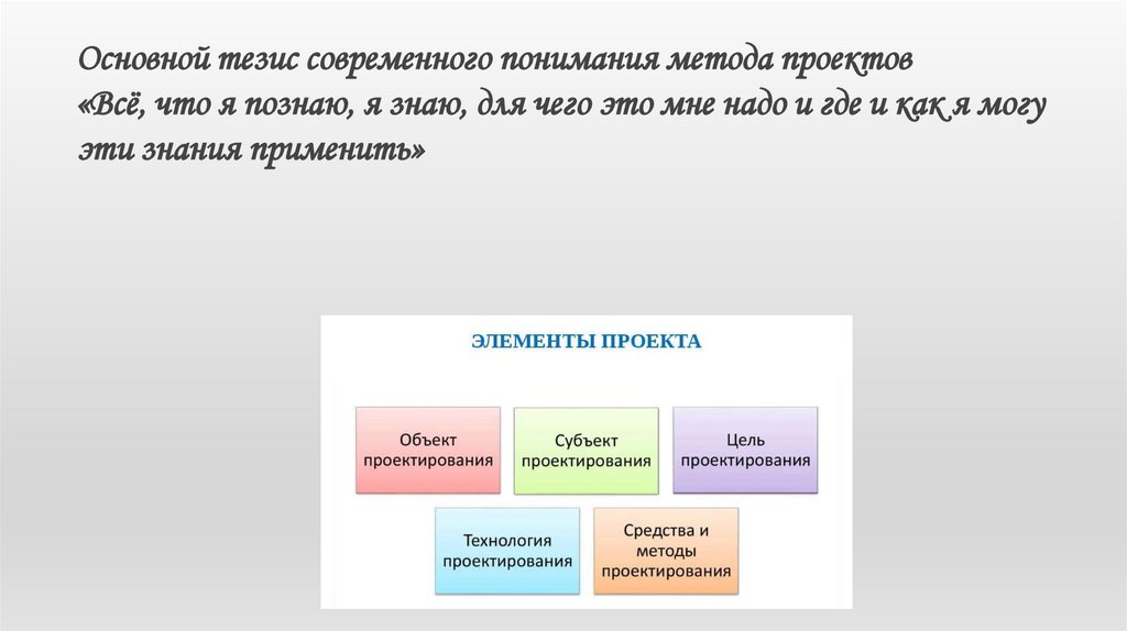 Основной тезис современного понимания метода проектов«Всё, что я познаю, я знаю, для чего это мне надо и где и как я могу