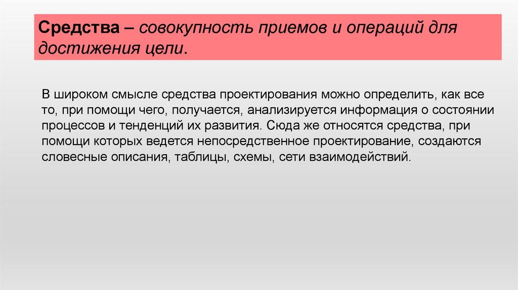процессов и тенденций их развития. Сюда же относятся средства, при